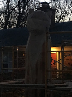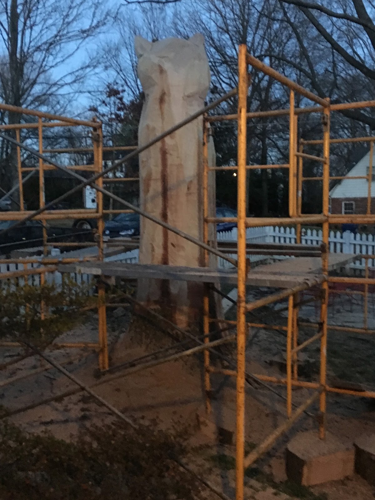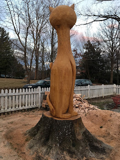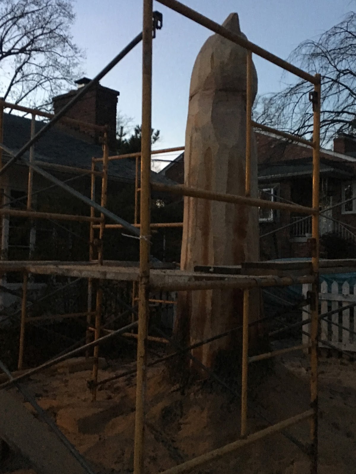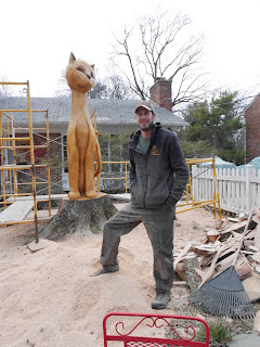 But honestly, with this stump very visible from the street, I didn't want something that wasn't really nice. And to get something nice you either work very slowly and carefully, or pay to have it done. Luckily, my wife knew of a former co-worker's son who does chainsaw carving professionally. I interviewed Andrew and looked over photos of his work on his website, and we decided to have him do the work.