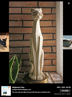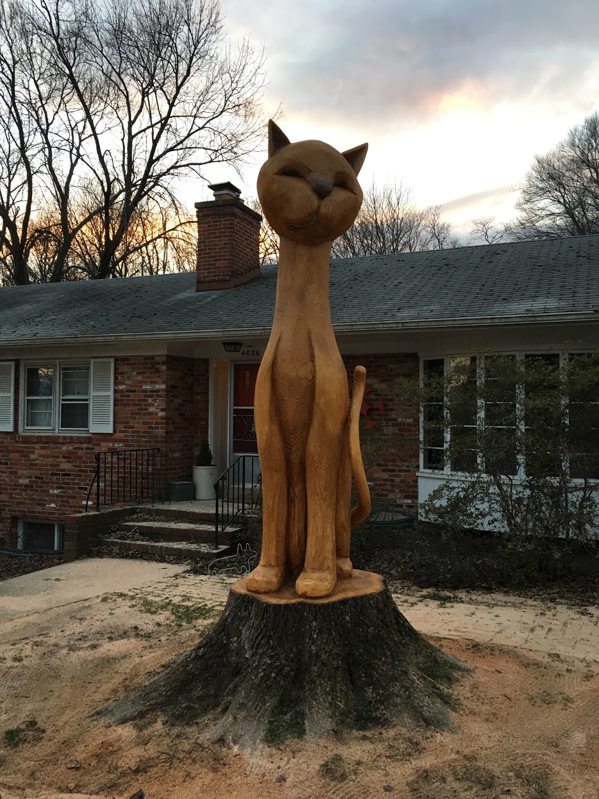 I thought a lot about what I wanted and what would appeal to more people than another tiki-oriented sculpture and it became obvious that the answer was a stylized cat. Very mid century.